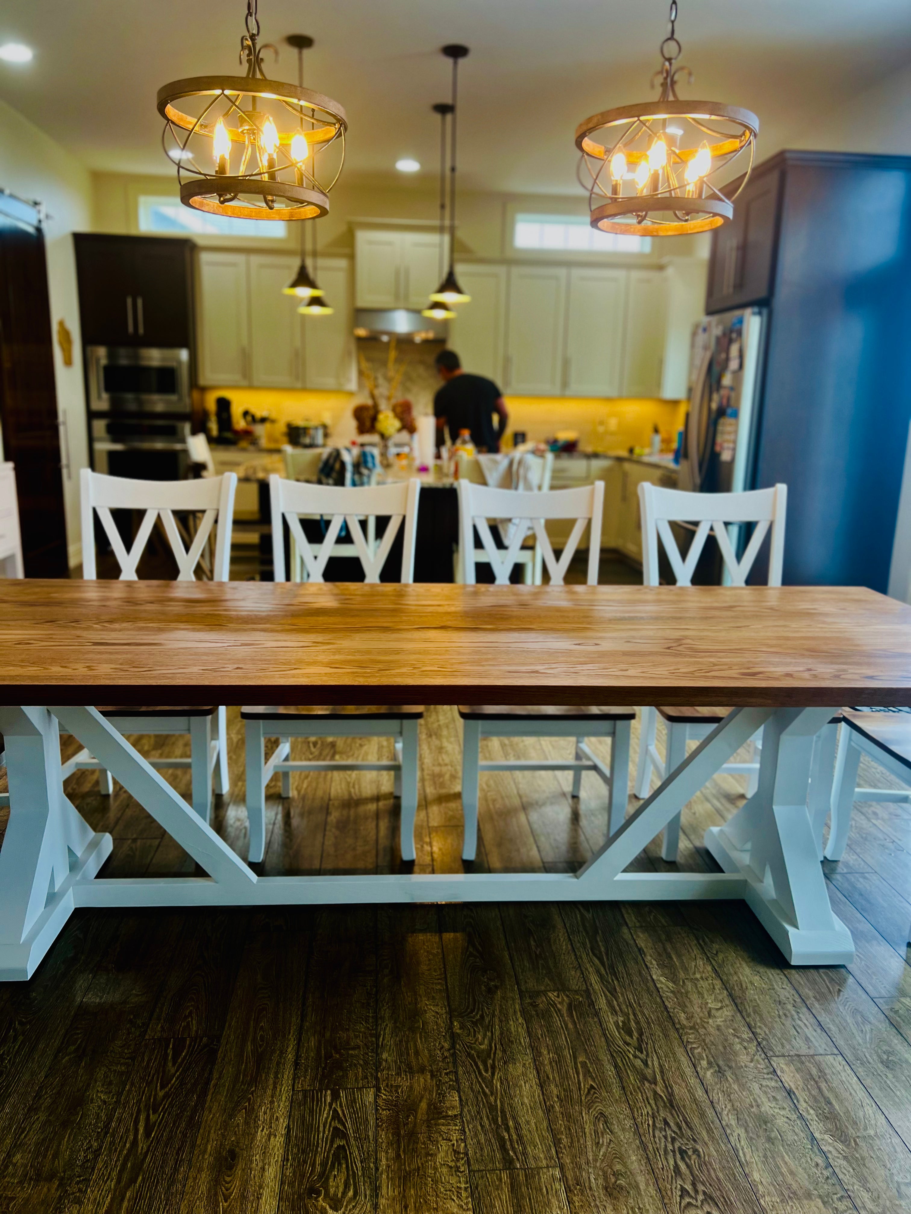 Walnut Live Edge Leila Base W/Matching Bench & Fence Style Chairs