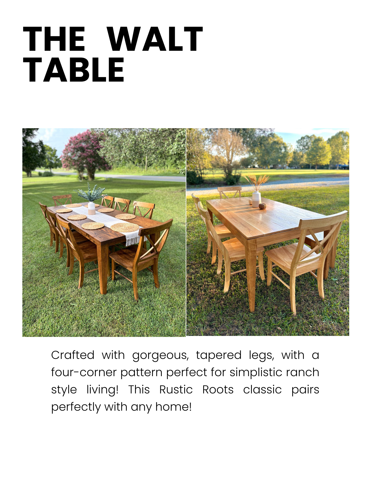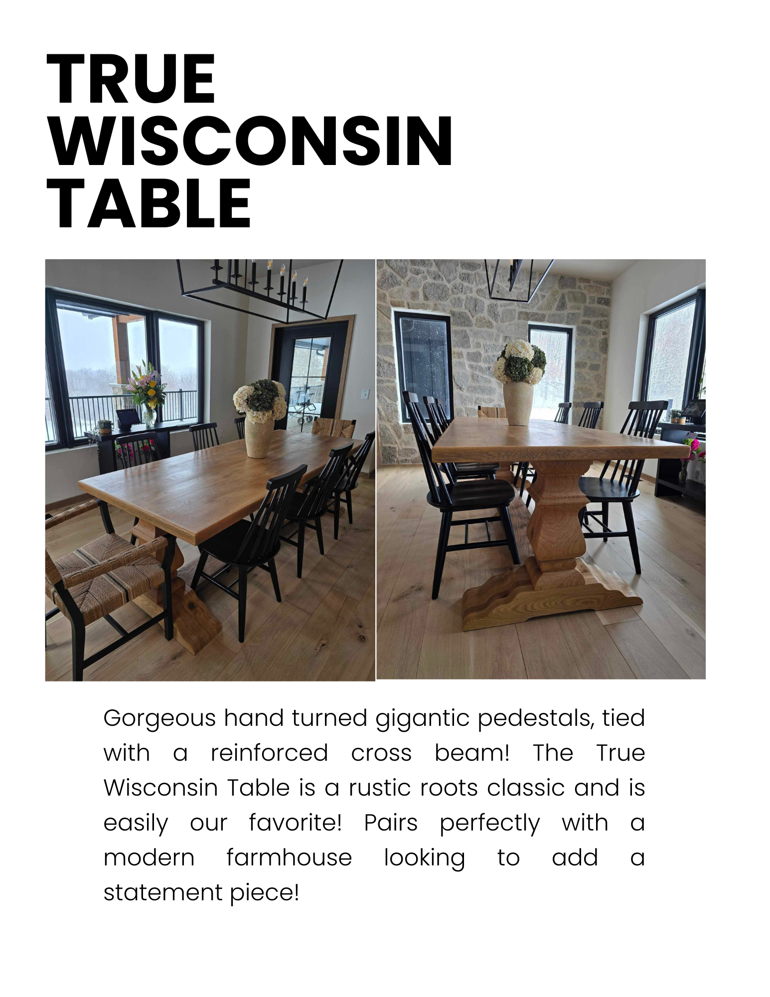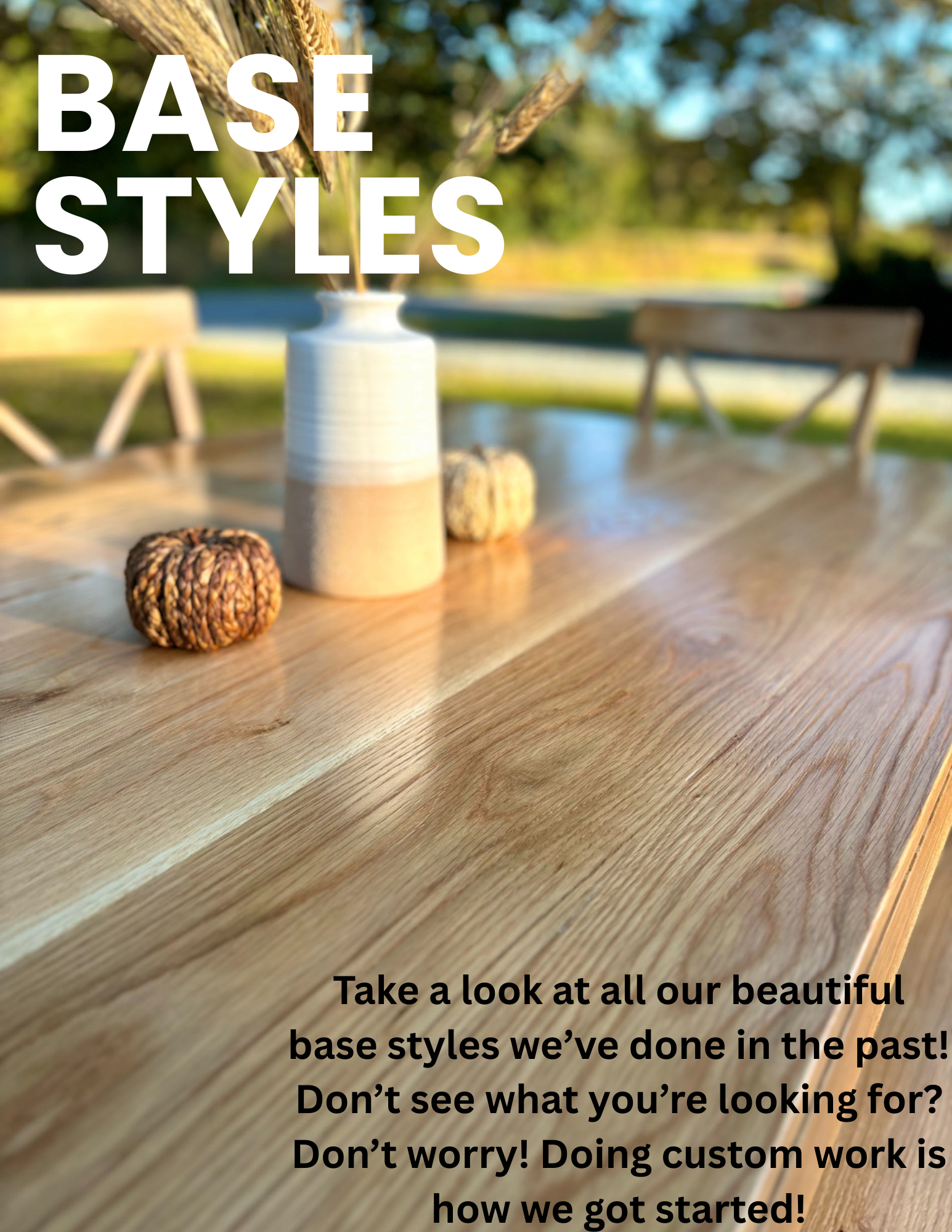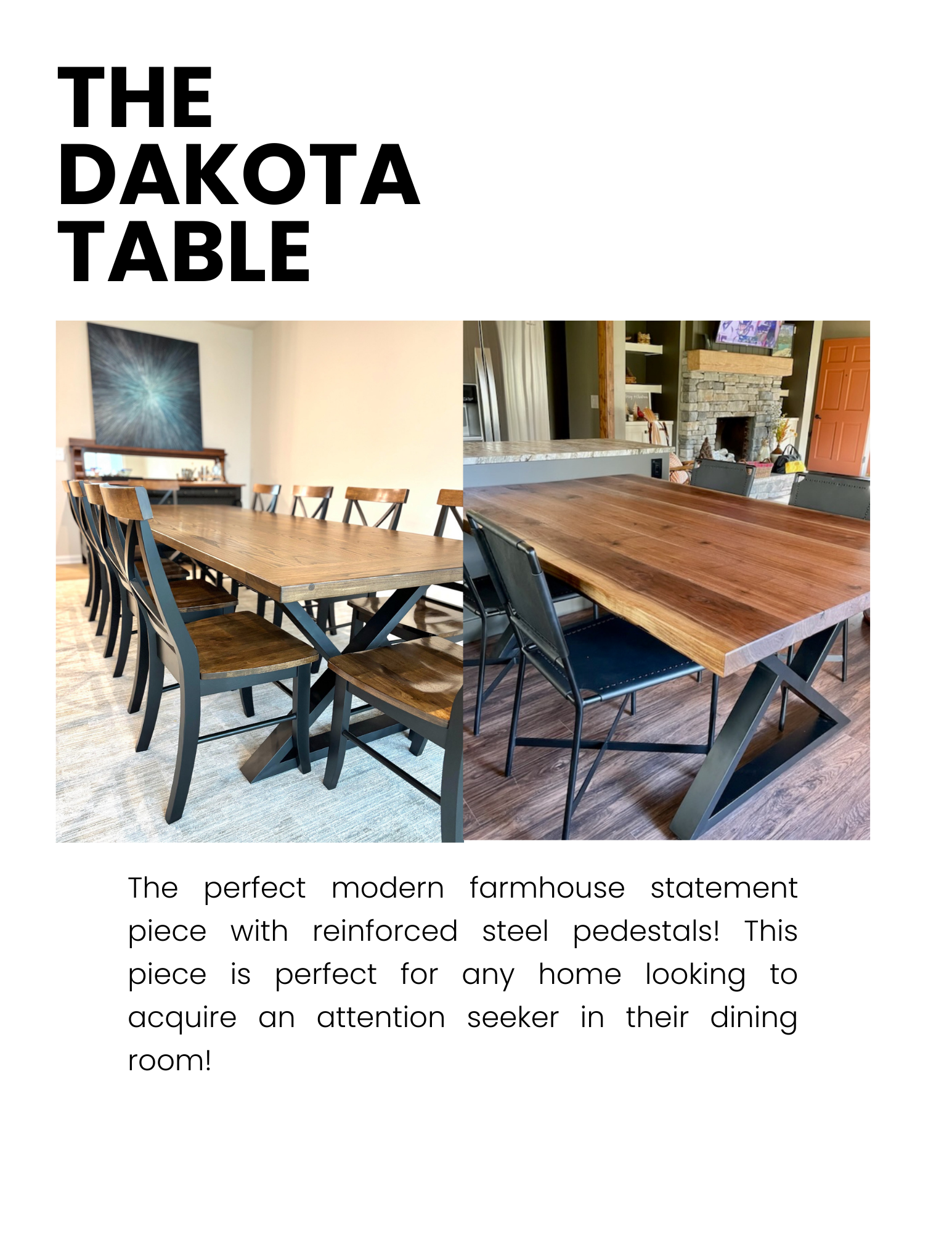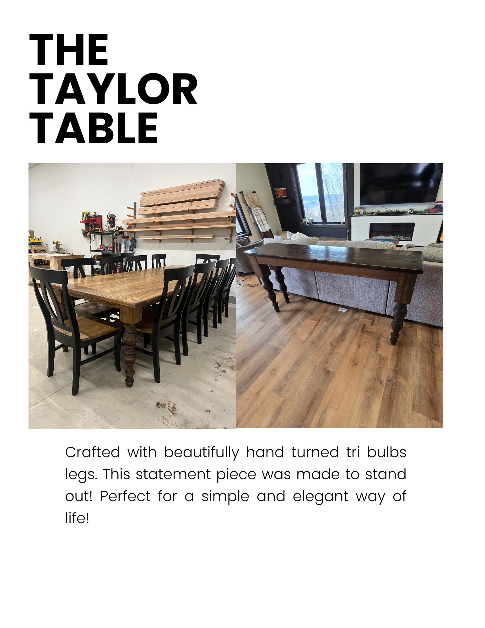 Here you can view our in-person design catalog we use with all our clients! Our catalog has our most popular table designs, chair prices, wood and finish options, etc. Please view our gallery to see fully completed projects we've done in the past. Everything is fully custom to you and made to order!